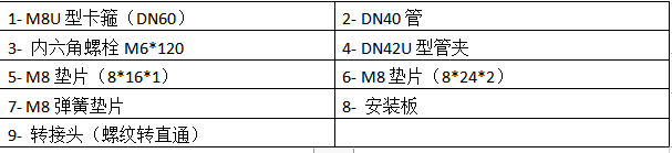 将2(DN40管),通过4(DN42U型管夹)固定于8(安装板)上,如图3
