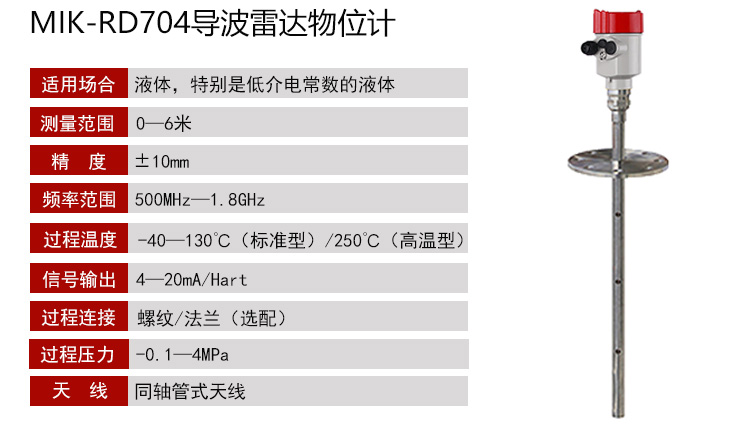 MIK-RD70雷达物位计天线发射极窄的微波脉冲,这个脉冲以光速在空间传播,遇到被测介质表面,其部分能量被反射回来,被同一天线接收。发射脉神与接收脉冲的时间间隔与天线到被测介质表面的距离成正比。由于电磁波的传播速度极高,发射脉神与接收脉神的时间间隔很小(纳秒量级)很难确认,MIK—RD70导波雷达物位计采用种特殊的解调技术,可以准确识别发射脉神与接收脉神的时间间隔,从而进一步计算出天线到被测质表面的距离。